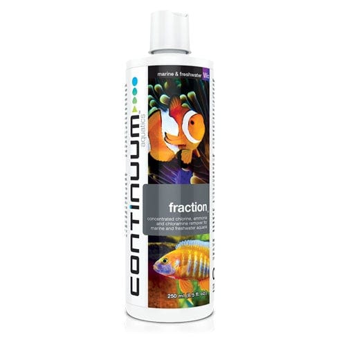 Fraction is a technologically advanced, premium quality, maximum strength water conditioner that makes tap water immediately safe for freshwater or marine aquarium use. It is also the premium product for use directly in a freshwater or marine aquarium to remove toxic ammonia, nitrites or nitrates. It will immediately remove over dosages of iodine or potassium permanganate based products in the aquarium as well as over dosages of medicinal dyes. It is safe for all marine or freshwater species including sensitive fish, live corals and other invertebrates and live plants. Fraction contains no slime coat enhancers as these could pollute the aquarium.